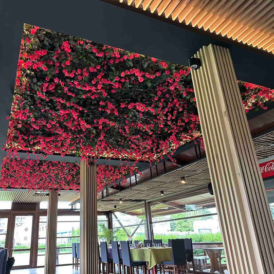Декорация от изкуствени растения с червени цветове за таван Зоуи