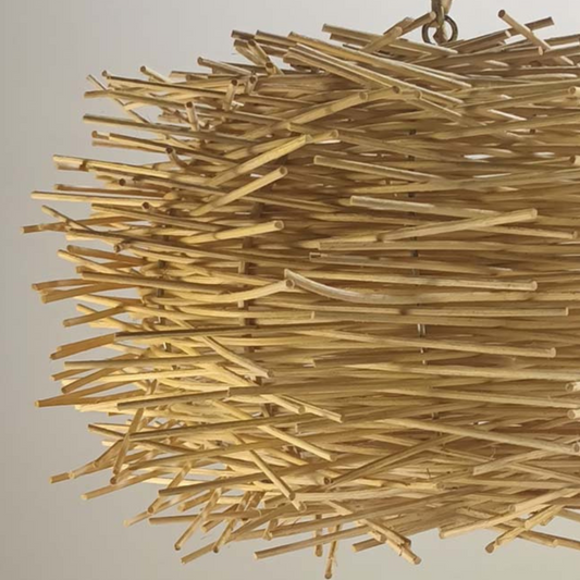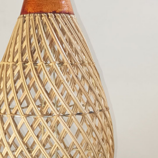 Абажури и лампи от естествен ратан, бамбук, бананови киста и водна трева