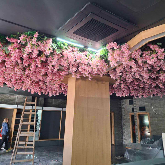 Изкуствено озеленяване за таван с розови цветя 078