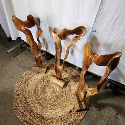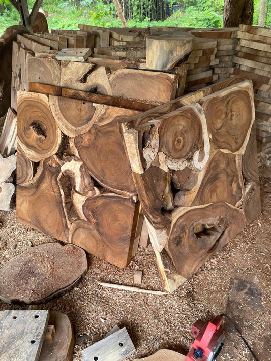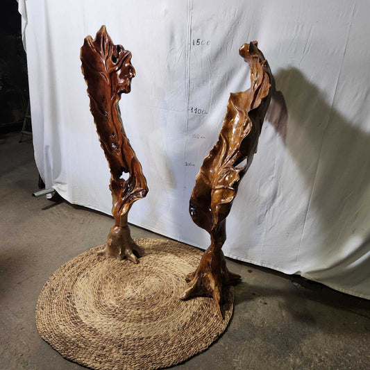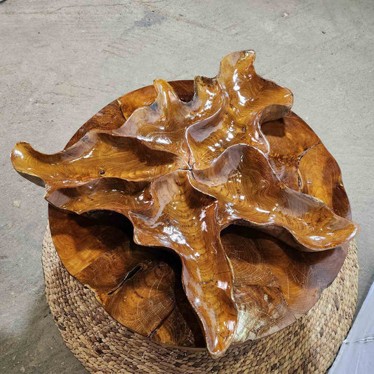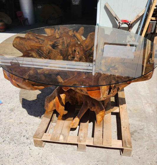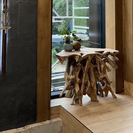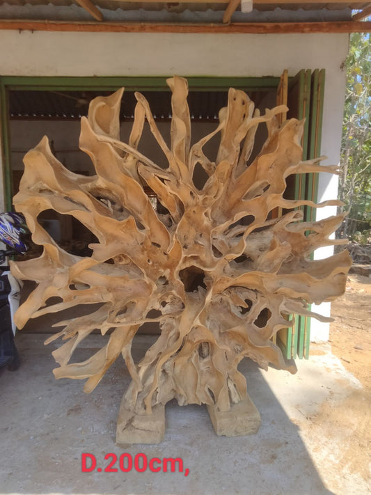 Открийте уникалната сила и красота на природата с нашата колекция от маси и декоративни елементи, изработени от тикови корени. Всяко изделие е едно по рода си – с органични форми, характерни извивки и текстура, която носи историята на дървото.
