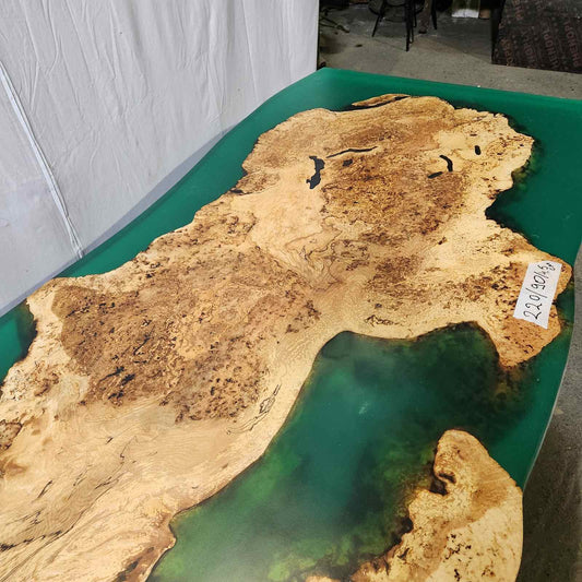 ПО ПОРЪЧКАДървена маса с жив ръб ясен и зелена смола