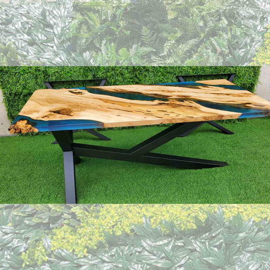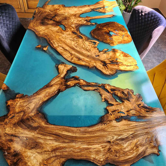 Трапезна маса от корен на акация и синя епоксидна смола - PMD 097