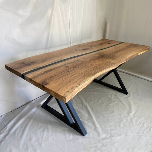 Трапезна маса от масив и епоксидна смола със запазена форма на дървото - PMD 107