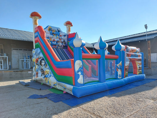 ПО ПОРЪЧКАНадуваем батут с 2 пързалки "Смърфовете" 017