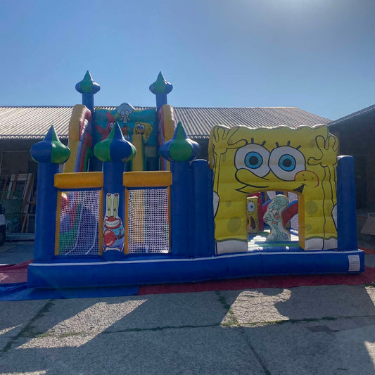 ПО ПОРЪЧКАНадуваем батут с пързалка "Спондж Боб" 056