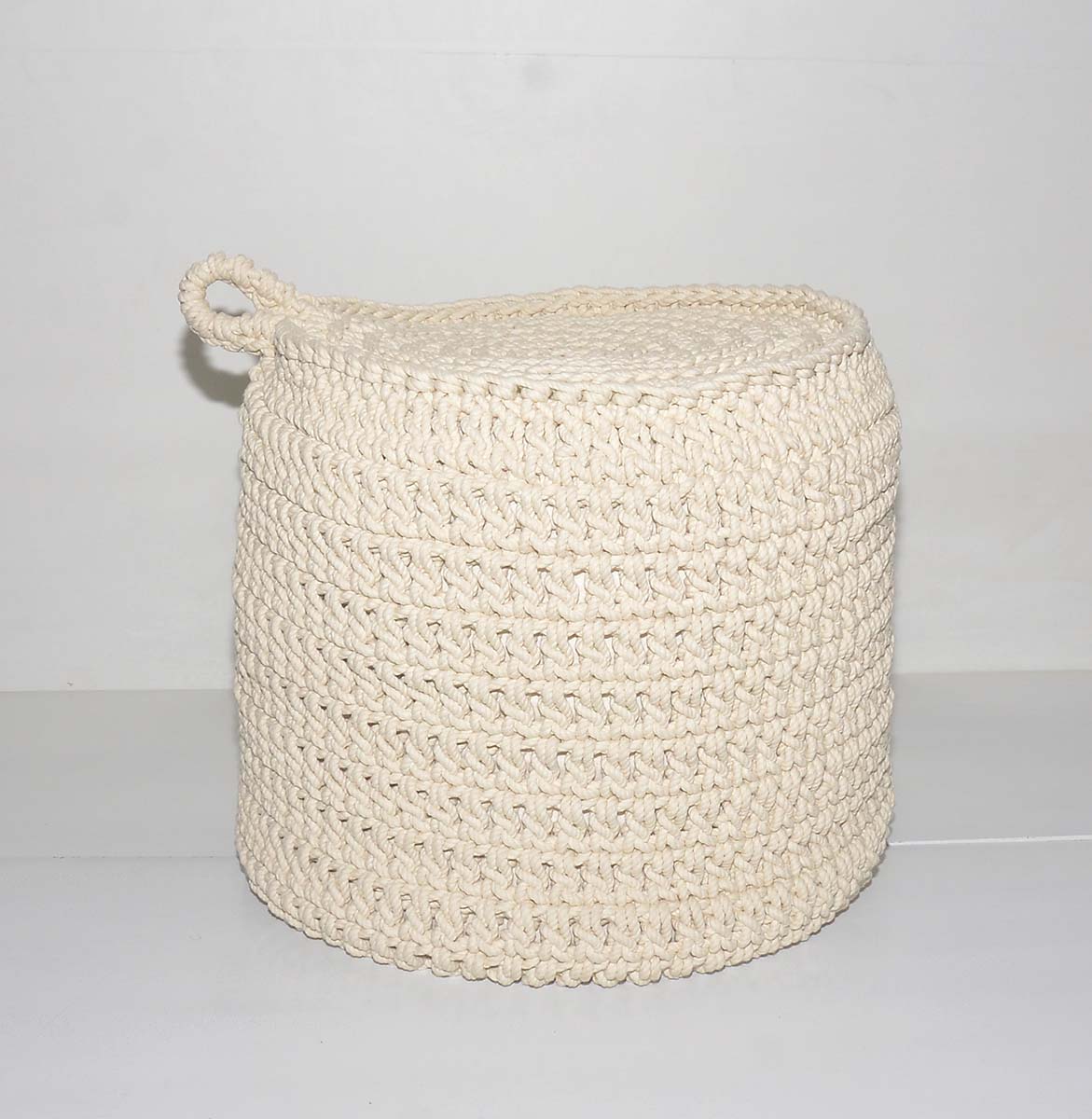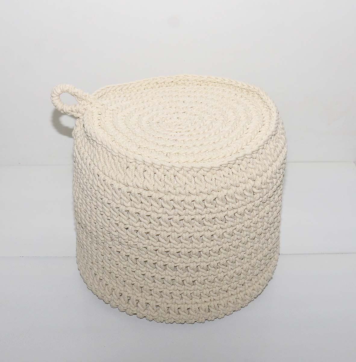Плетен пуф, изработен от меко памучно въже Макраме. Използвайте го като пуф за почивка, ниска масичка или като декоративен елемент. Достъпен в четири цветови варианта - бял, екрю, капучино и черен - изберете този, който най-добре подхожда на вашия дом, градина или плажен бар. Позволете си комфорт и стил с ръчно изработен пуф от макраме!