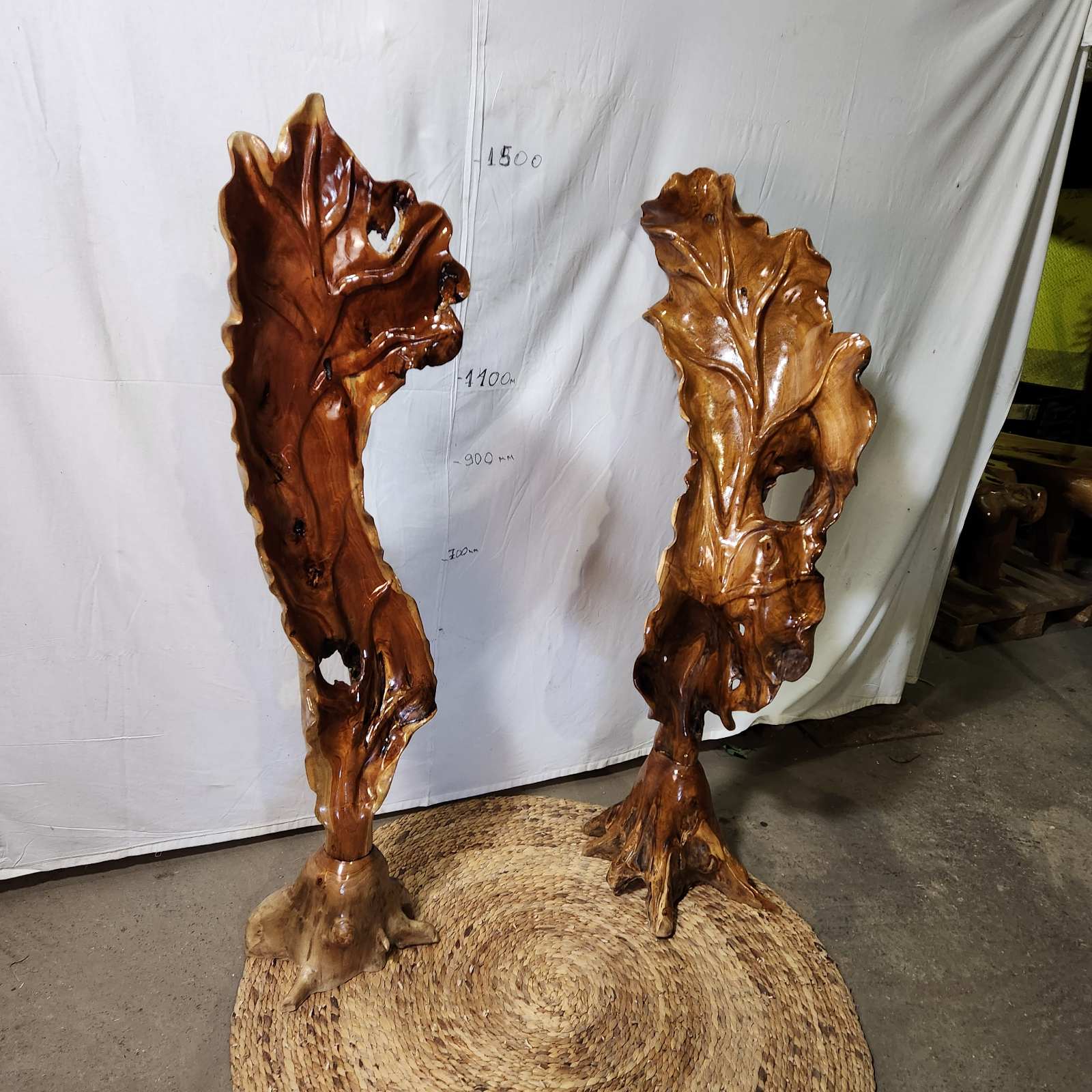 Елегантна декоративна фигура, изваяна от масивно тик дърво и поставена върху стабилна метална стойка. Уникалната форма и естествената текстура на тика превръщат изделието в впечатляващ акцент за всеки интериор. Подходяща е за модерни, бохо, сканди и арт пространства. Добавя стил, характер и усещане за природна хармония във всяка стая.
