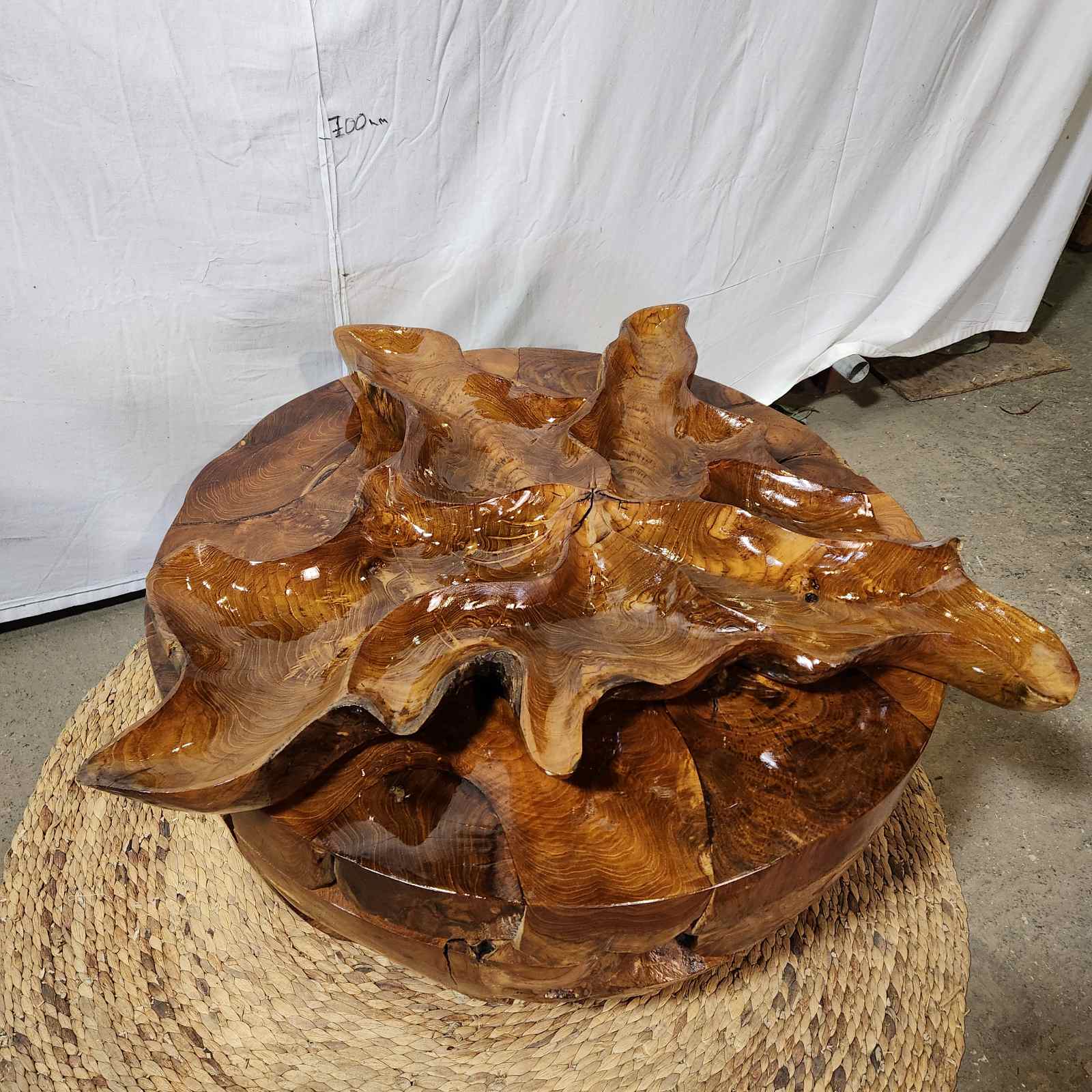 Стилно плато, изработено от естествен корен на тик, което впечатлява с органична форма и уникална текстура. Благодарение на масивната структура и гладката повърхност е чудесен избор за подредба и сервиране на различни храни. В същото време неговата артистична визия го прави идеален и като декоративен елемент за стена. Подходящо е за интериори в бохо, рустик, еко и модернен стил, добавяйки натурална красота към всяко пространство.