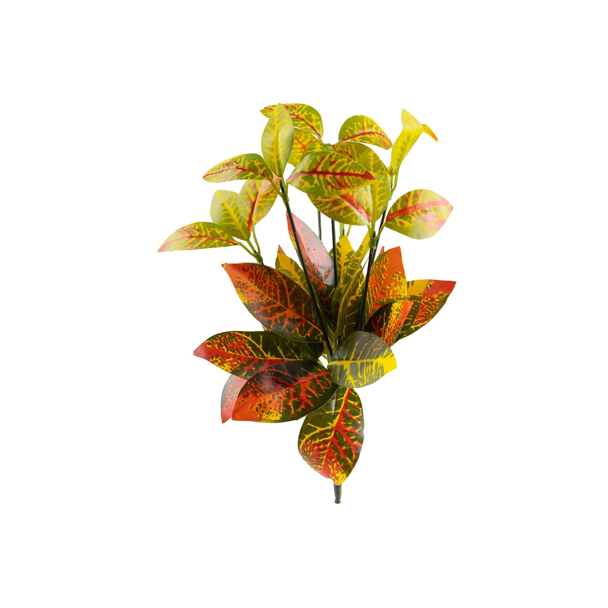 Декоративното растение е в красиви багри в зелен, червен и оранжев цвят.