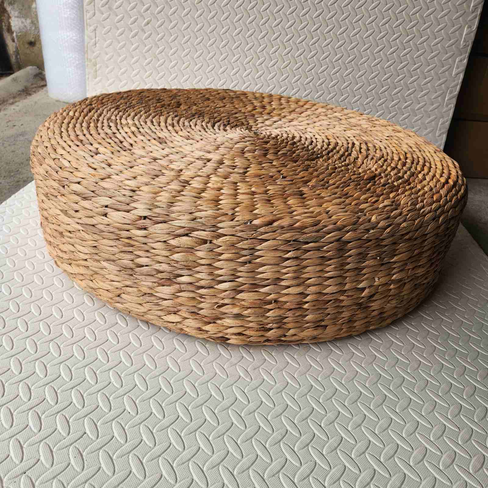 Голяма цилиндрична табуретка от воден хиацинт с модерен натурален дизайн. Благодарение на широкия диаметър може да се използва като ниска масичка, седалка или декоративен акцент. Плетената структура създава естествена текстура и уютна атмосфера. Идеален избор за интериор, тераси и плажни барове.