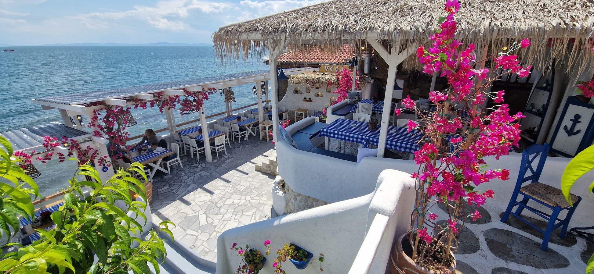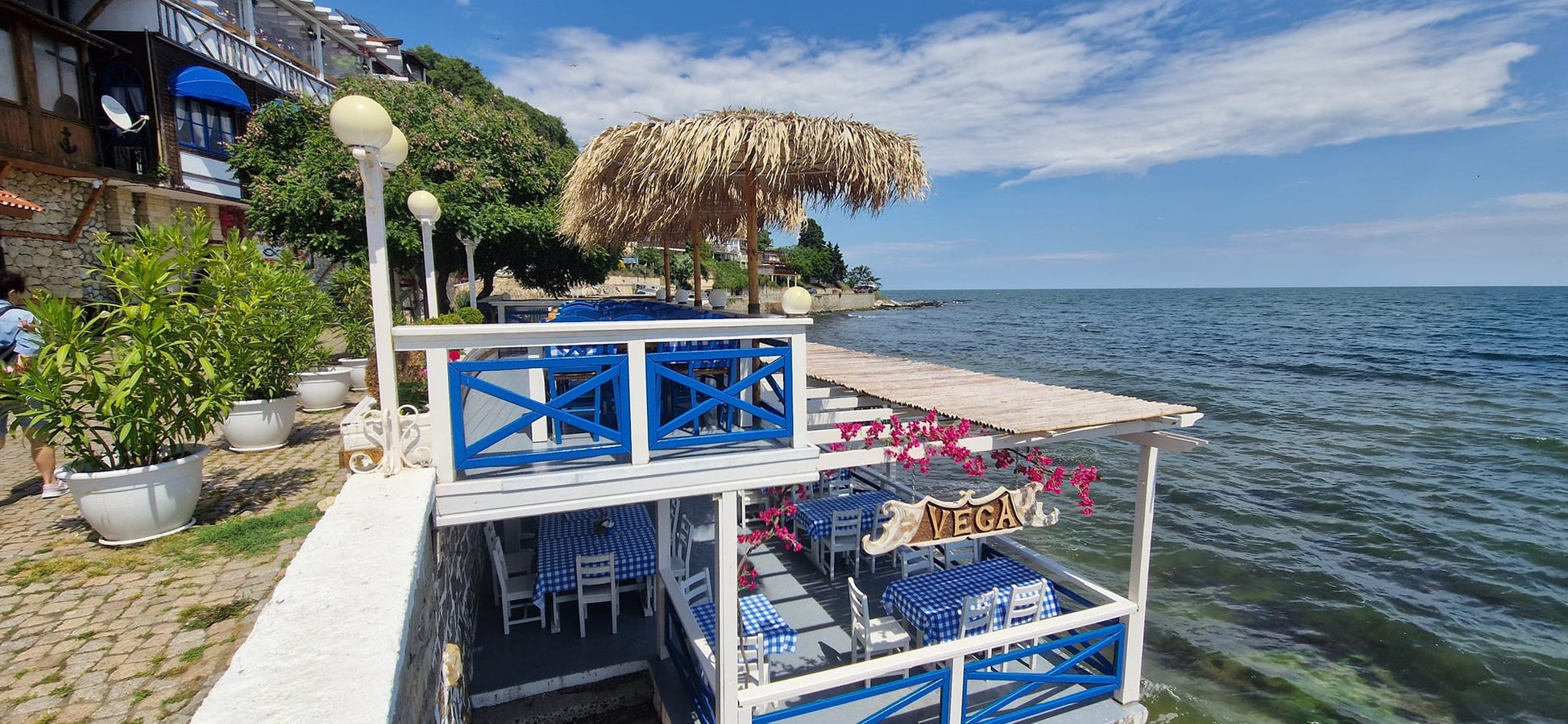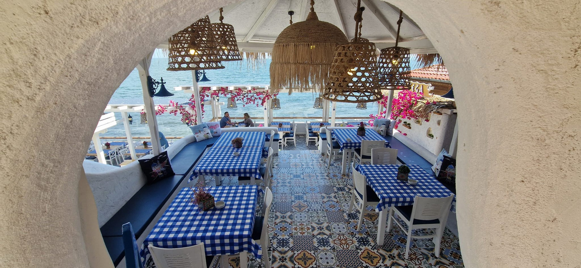 Добре дошли в нашата бохо-тропическа дестинация – ресторант VEGA на брега на морето, в който естествените материали срещат вдъхновяващия дизайн. Работихме усилено, за да пресъздадем автентично усещане, като използвахме гъсти покрития от палмови листа за покрива и чадърите, осигуряващи истинска сянка. Визуалният цветен акцент е поставен върху цикламената Бугенвилия и дръвчета, чиито наситени цветове привличат погледа. Вечерната атмосфера е дело на тъканите лампи от ратан и морска трева, които обгръщат пространството в топъл, кехлибарен ореол. Добавихме изтънченост със зелени екзотични кактуси, които финално запечатват уникалния стил.
