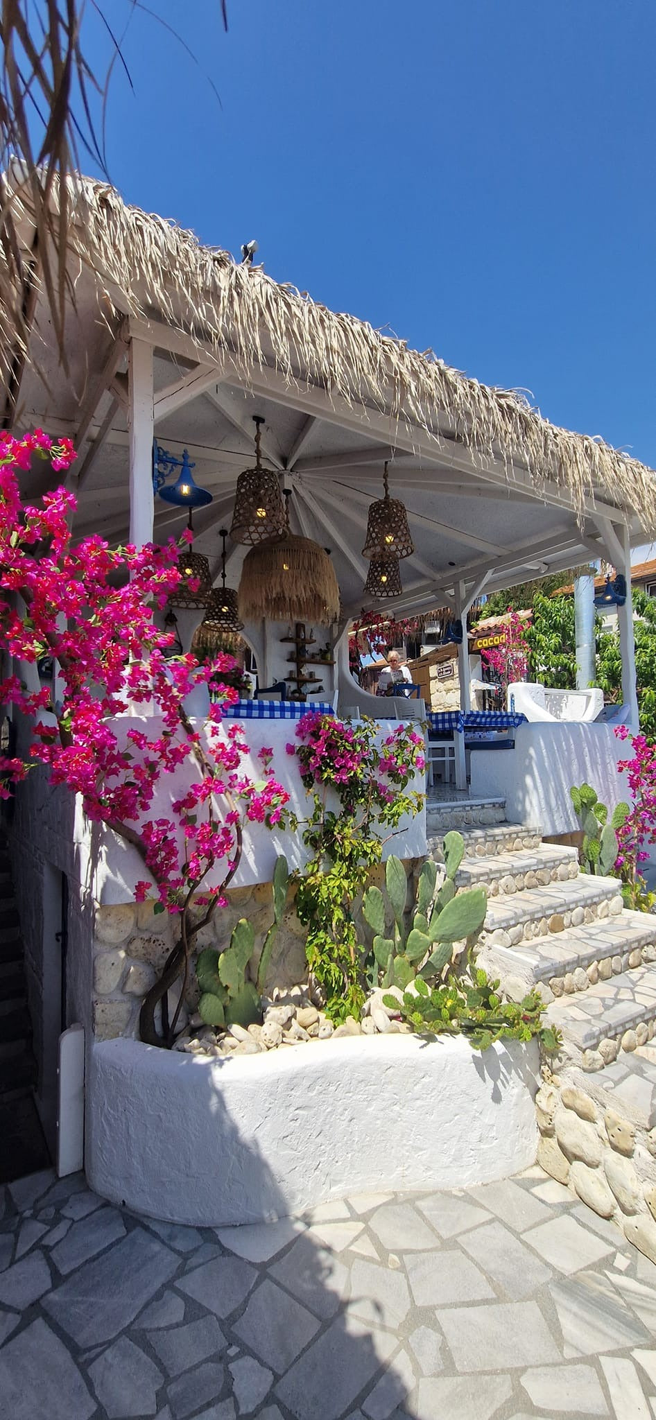 🔧 Продукти: Цветни цикламени дръвчета и клони Бугенвилия, покритие от палмови листа за покрив, екзотични кактуси в саксия, лампи от морска трева и ратан, покрития от палмови листа за плажни чадъри