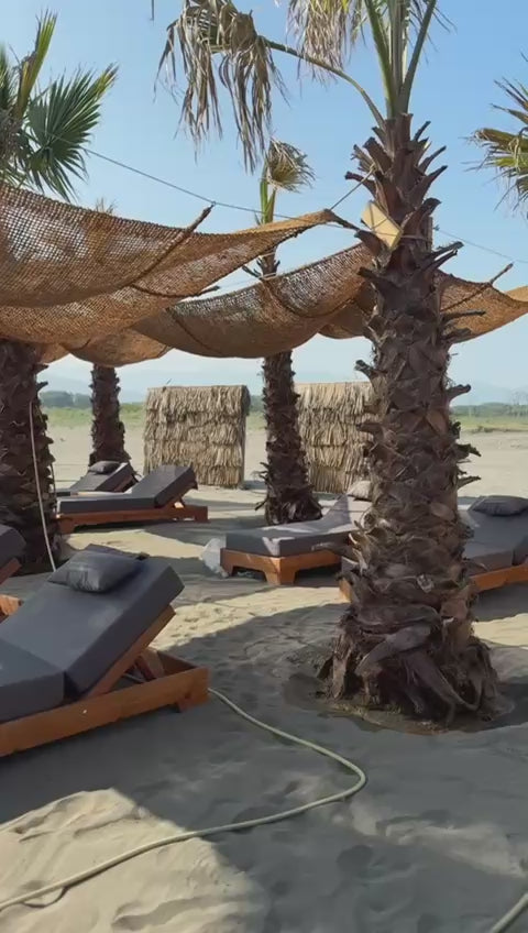 Изработена от устойчиви на външни условия естествени материали, тази тента е идеална за създаване на приятна сянка във вашия двор или градина. Тентата се предлага с лесни за употреба карабини за бърза и сигурна инсталация, което я прави изключително практичен избор. Съчетавайки природна красота и дълготрайност, тя е перфектното решение за декорация на открито. Налична в различни размери, тентата може да се адаптира към всяко пространство и стил.