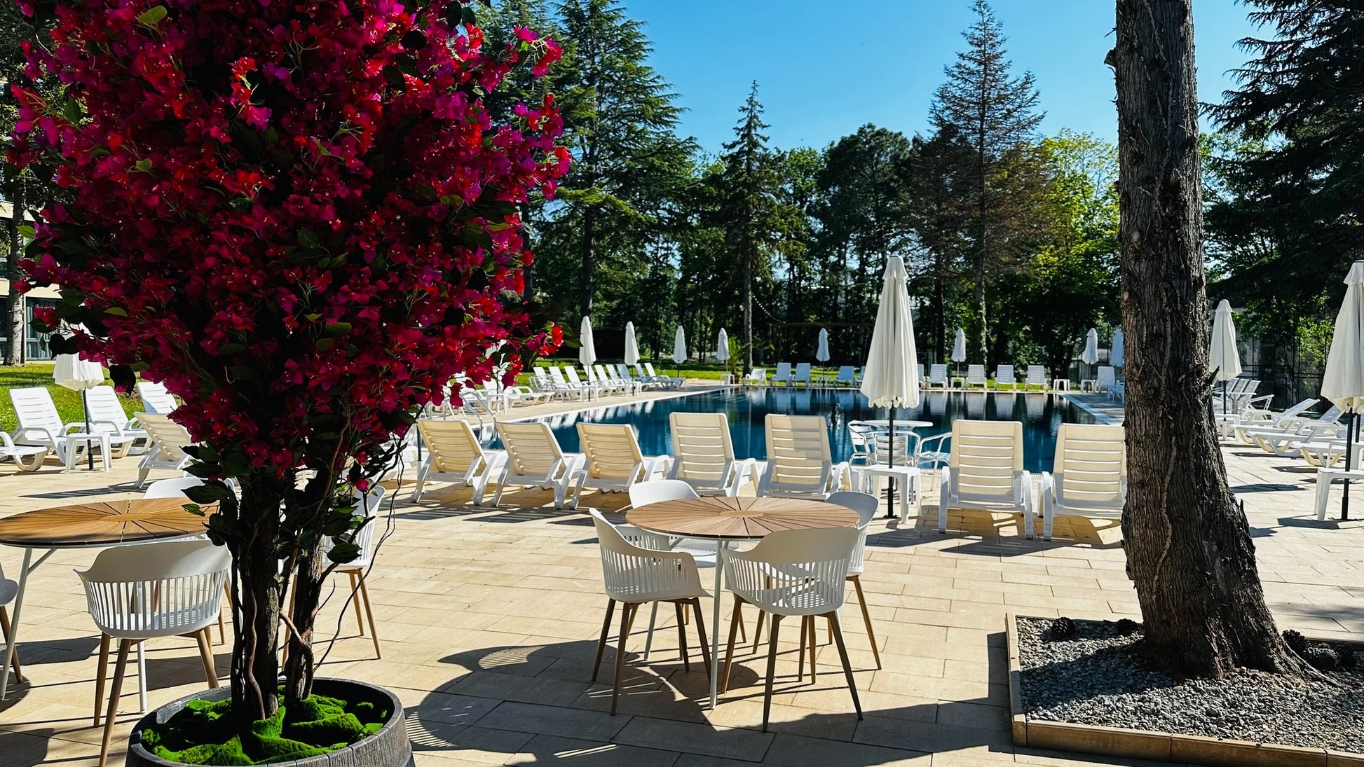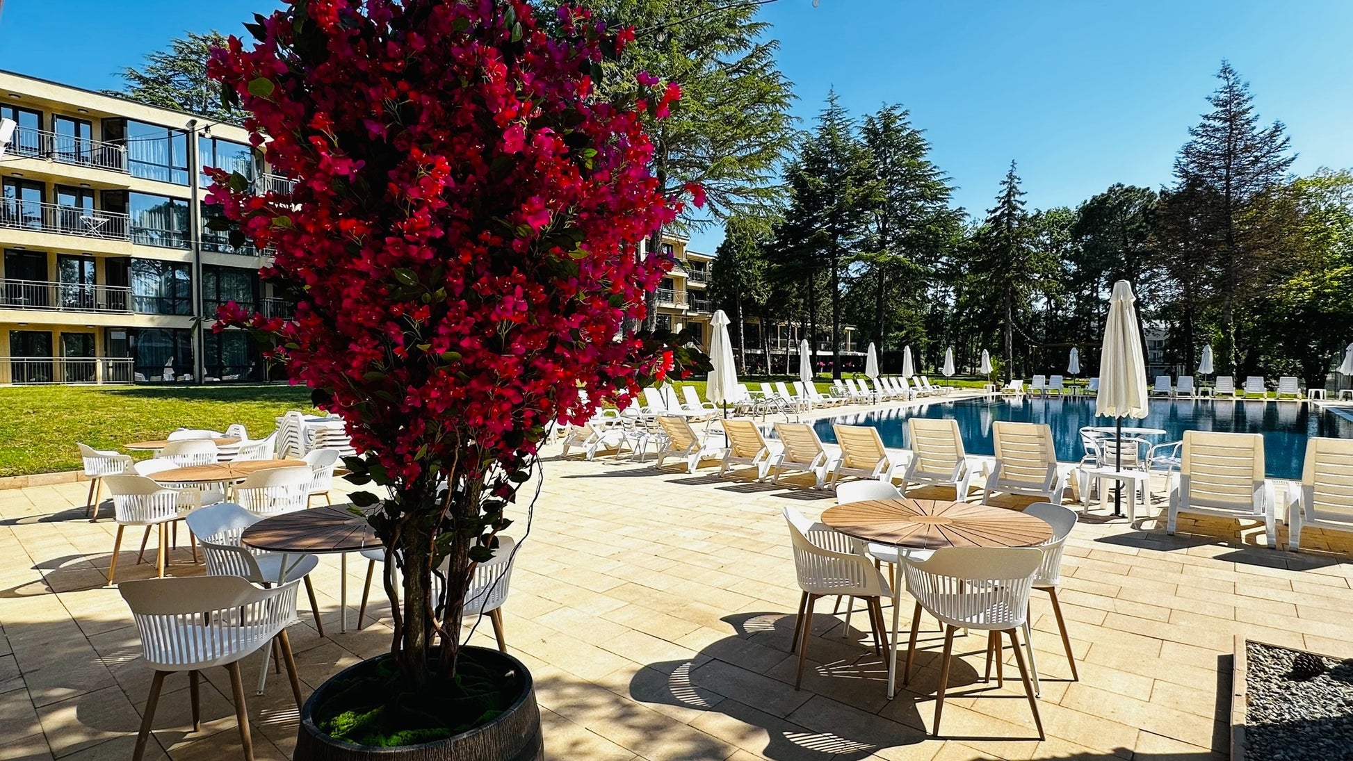 Изпълнихме проект за външно озеленяване в хотел Queen Nelly Park, в който всяко растение е символ на непреходен лукс и качество. Нашите изящни изкуствени дръвчета от Бугенвилия бяха подбрани заради изключителния си реализъм и пленителните червени и цикламени багри. Създадохме масивна декоративна арка, обсипана с гъсти, живописни цветове, която служи като централен, артистичен акцент. Допълнително оформихме елегантни кашпи с висококачествени изкуствени Бугенвилии, които поддържат безупречната визия на обекта. Този плътен, ярко оцветен декор гарантира впечатляваща визия без нужда от постоянна поддръжка.